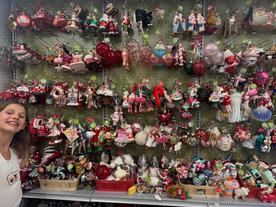 Jika Anda ingin memperbarui hiasan pohon Natal Anda, datanglah ke Michaels. Putri saya seperti anak kecil di toko permen, mencoba memilih dari berbagai pilihan yang tersedia di dinding.
