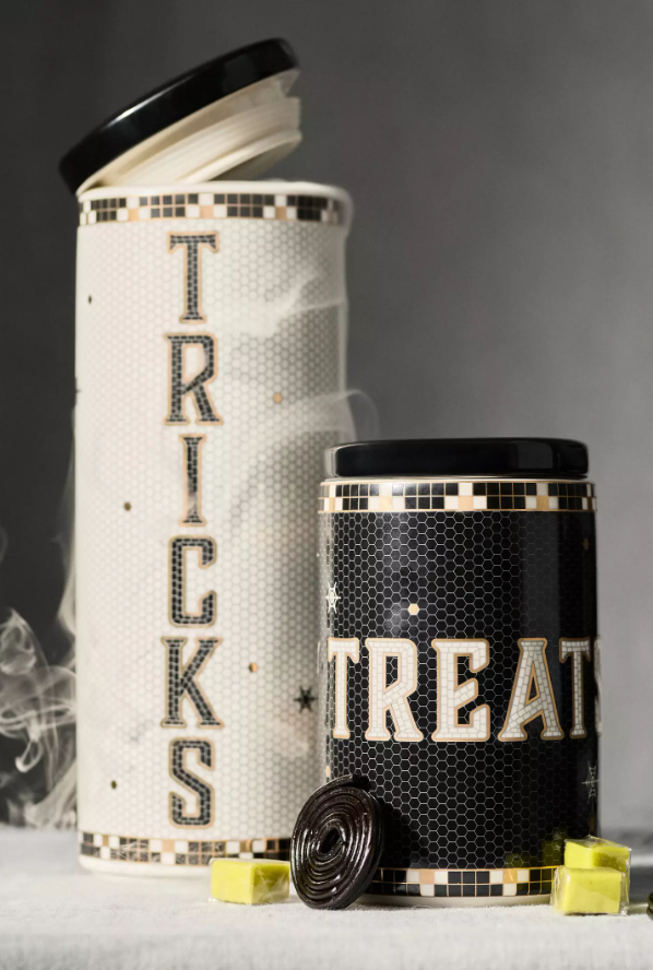 Koleksi Bistro Tile yang disukai penggemar mendapatkan sentuhan musiman yang menyeramkan, dengan nada malam yang dalam, makhluk malam yang lucu, dan sedikit nuansa Prancis – selesai dengan semprotan emas 24k. Ini adalah cara sempurna untuk meningkatkan meja Halloween Anda dengan sedikit elegansi yang agak menyeramkan.