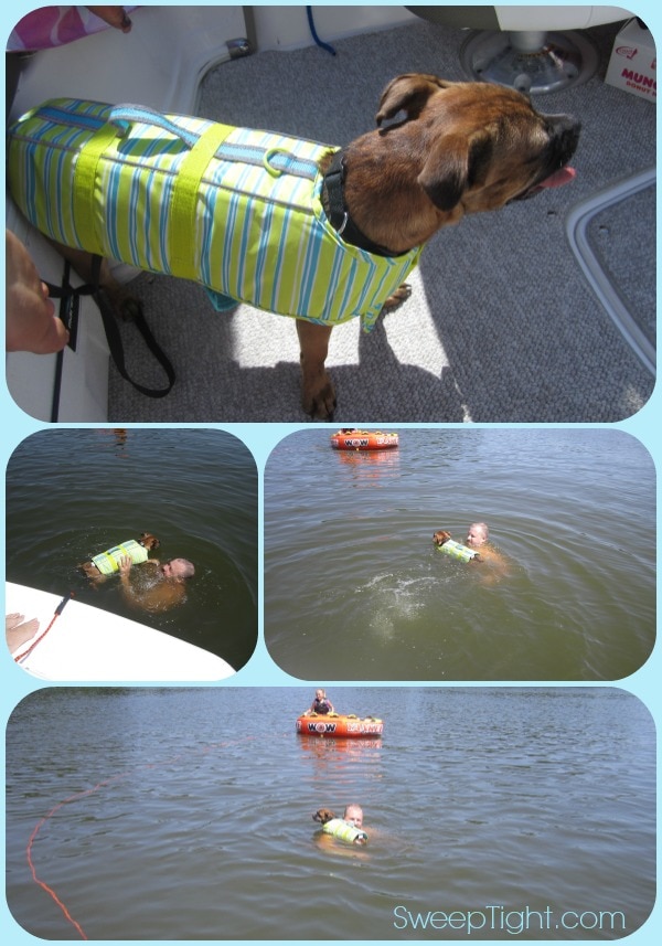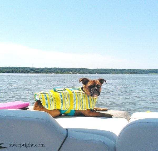 Segera setelah saya memberi tahu orang-orang di PetSmart bahwa kami akan berperahu bersama The Grump, kamiCampuran Boston Terrier dan Pug, mereka tahu persis apa yang harus dikirimkan kepadanya. Baju pelampung dari koleksi Martha Stewart Pets cocok sekali untuknya. Bahkan cukup panjang untuknya, yang terkadang menjadi masalah. Ia terlihat sangat nyaman di dalamnya, dan saya pikir itu bahkan menenangkannya dan membuatnya merasa lebih aman. Tidak lama kemudian ia sudah cukup nyaman dan berlayar seperti seorang ahli.
