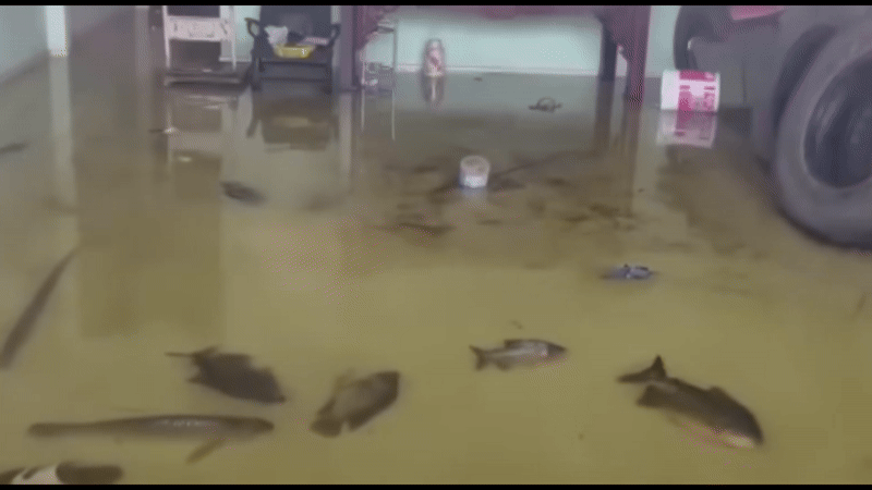 Sekolah ikan pomfret ‘berenang’ masuk ke rumah untuk menghindari banjir