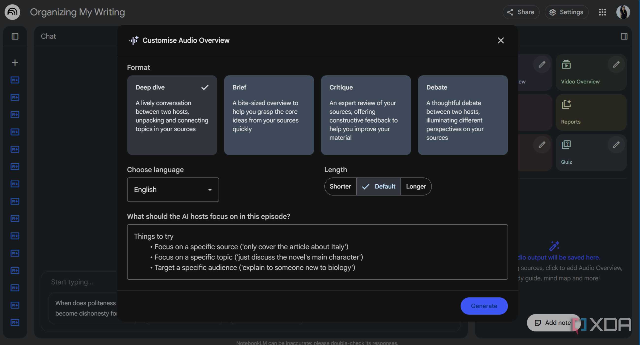 Aplikasi ini juga menghasilkan “Ringkasan Audio” yang merupakan diskusi dalam bentuk podcast yang digenerasikan oleh AI antara dua pembawa acara sintetis yang menganalisis sumber Anda. Saya mencobanya dengan skeptis, mengharapkan ringkasan yang terdengar mesin. Justru saya mendapatkan percakapan selama 10 menit yang terdengar seperti dua orang yang benar-benar tertarik pada ide-ide setengah-selesai saya, berdebat tentang sudut pandang mana yang paling kuat. Mendengar catatan Anda sendiri dibahas secara lisan menciptakan jarak psikologis yang sulit dicapai ketika Anda terjebak di dalam pikiran sendiri. Ini adalah analog digital dari menjelaskan ide Anda kepada teman dan tiba-tiba melihat langkah berikutnya yang jelas saat berbicara.