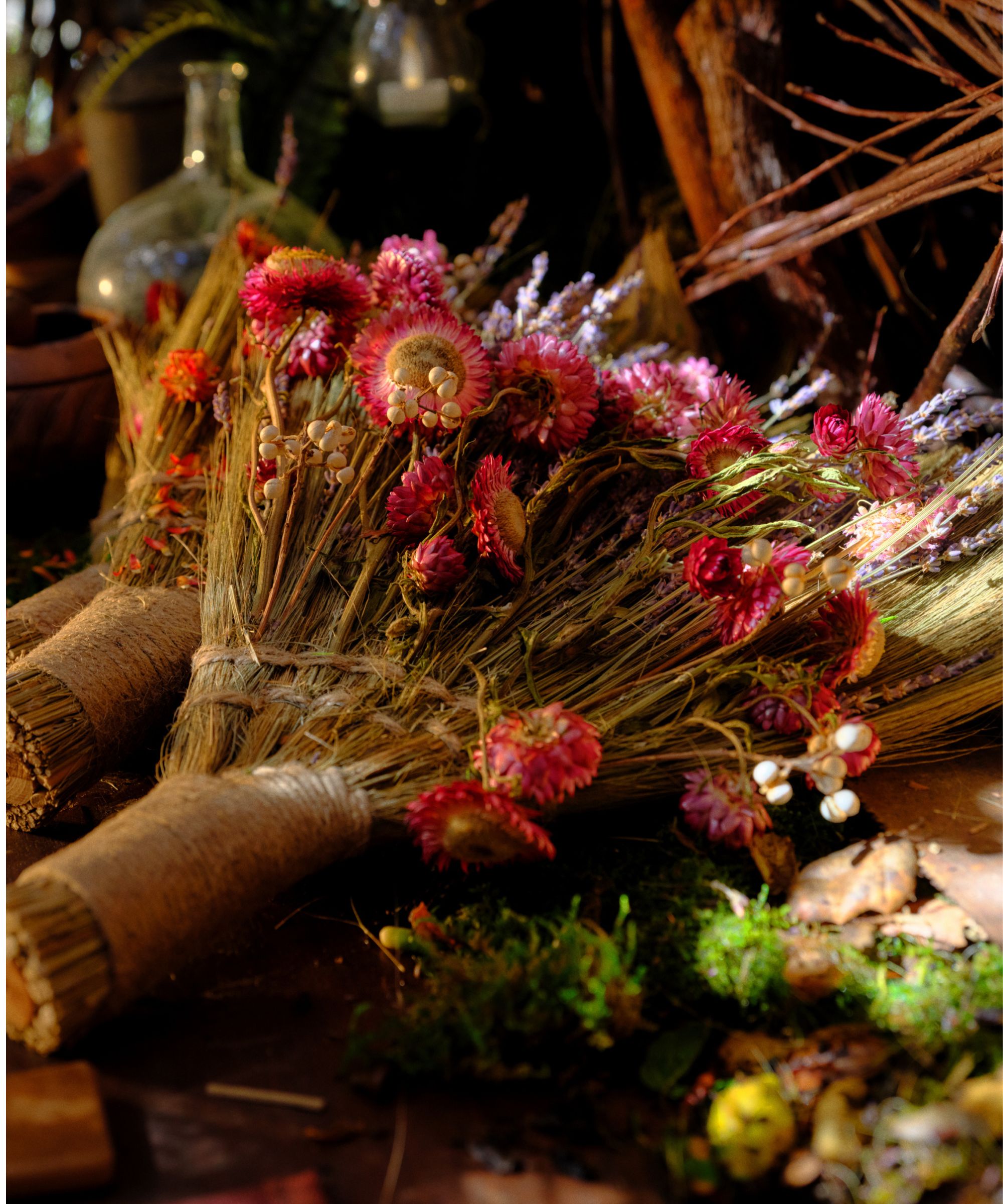 Aspek yang menginspirasi lainnya dari interior Elphaba adalah theintegrasi bahan alamiPenggunaan kayu hijau dan tidak diilap semakin populer dalam beberapa tahun terakhir dan paraJahatfilm pasti akan memperkuat penampilan ini. Penggunaan bunga kering di seluruh rumah sangat menonjol, menciptakan titik-titik kecerahan di antara kayu.